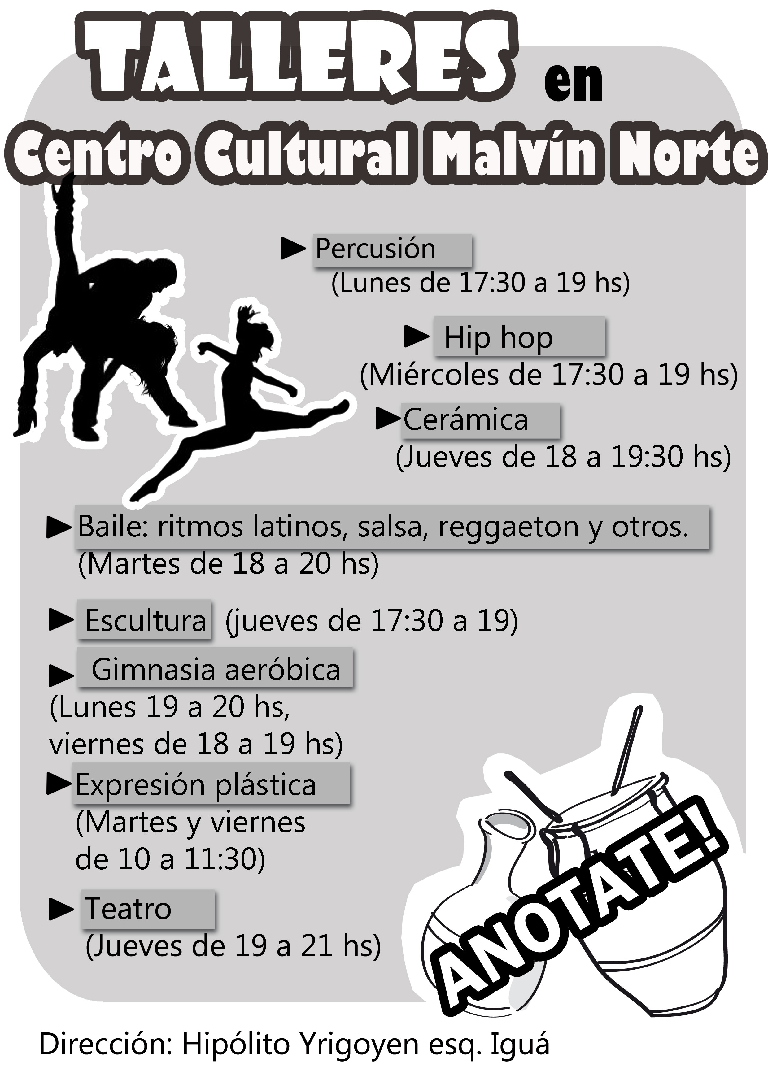 INSCRIPCIONES: Lunes a viernes de 12 a 18 hs. en el Centro Cultural Malvín Norte, o ir en horario de clase y coordinar con el/la profesor/a.